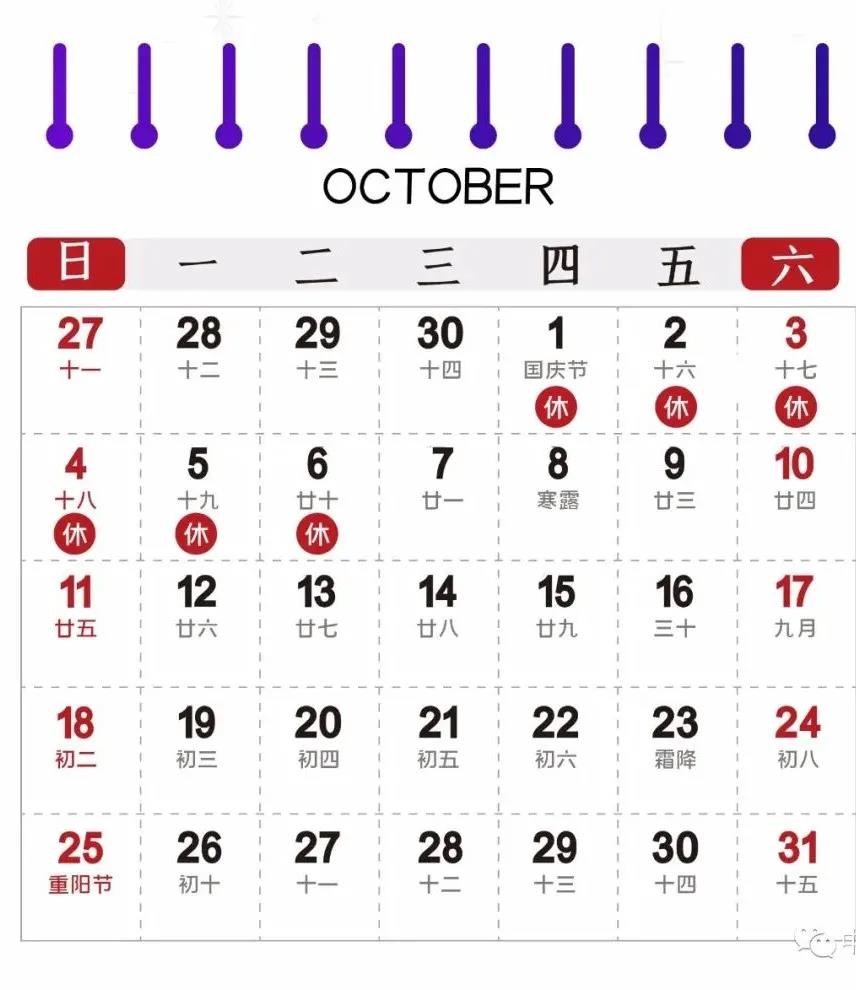 放假時間:10月1號-10月6號,共計6天