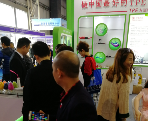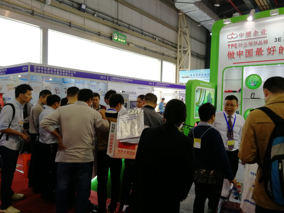 在過去四天的展會中,中塑企業(http://m.xhfangpei.com 135-1035-6035)的TPE材料備受生活用品、運動器材、公仔玩具、消費電子、電線電纜、成人用品、工具配件、汽車部件、家用電器等行業的的矚目,公司工作人員在3E301號展位上兢兢業業,為前來咨詢的顧客專業講解中塑企業TPE材料的精妙之處,完美呈現了TPE材料的高強度,高回彈性,可注塑加工等特征。同時,本次以綠白為主色調的中塑企業展位設計,成為本屆展會最亮眼的展位之一,綠色環保,高端大氣,時尚簡約,國際范十足,彰顯了中塑企業行業領先的地位,以下是展會現場火爆場面做精彩回顧。